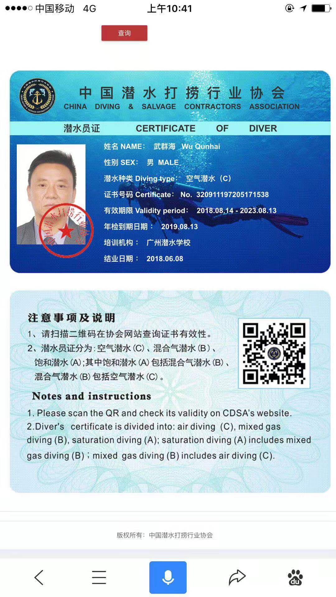 公司現(xiàn)有施工隊伍五個,專業(yè)潛水員30余人,技術(shù)人員20余人,多次參加了 重點項目施工:如三門核電廠,浙江跨海大橋,內(nèi)蒙烏錫鐵路黃河特大橋,寧杭高鐵,京福高鐵等水下切割、水上、水下拆除,水下混凝土灌注,水下鋼護(hù)筒切割等任務(wù)。